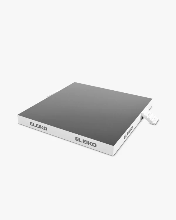 Part of any complete competition set up, the Eleiko IWF Weightlifting Podium creates a solid foundation for setting up the competition platform and setting the stage for a successful competition. The podium features a multilayered construction including sturdy aluminum frame, wooden beams, plywood and felt mat covering Also wooden stairs are included, one on each side. Step by step assembly instructions are included and the podium is adjustable for uneven flooring.