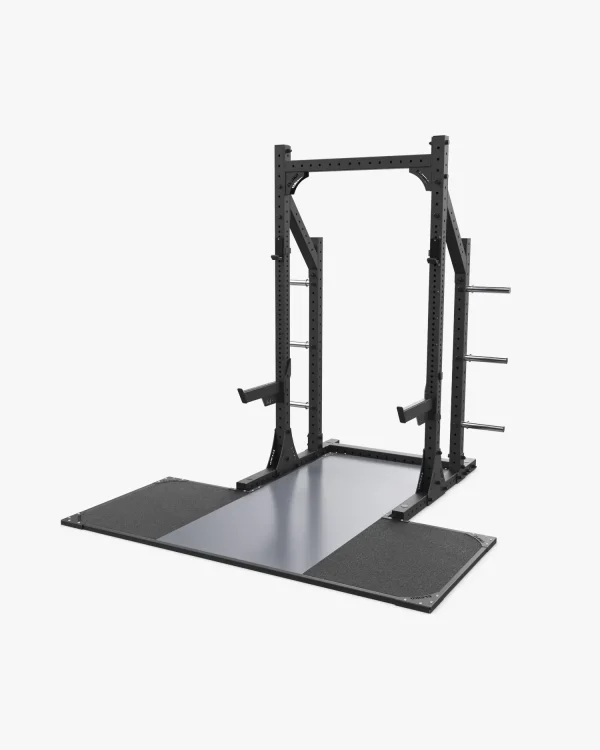 This modified version of our IWF certified training platform fits seamlessly with Eleiko Half Racks — Prestera and XF80 Racks. We use the same quality materials from our training platforms in a more compact design with an integrated insert piece that fits within the rack. The platform is easy to assemble and maintain. Thick durable odour-free rubber mats absorb shock and sound. The platform is designed to stand up to rigorous high-volume use of today’s busy facilities.