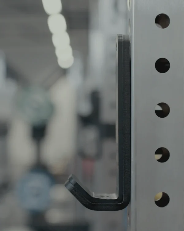 Eleiko Prestera J-Cups attach to uprights creating a place to safely rack a barbell between sets. Designed for long-term barbell protection, our J-cups are made from durable bent steel lined with a plastic UHMW coating to protect the rack and bar knurling. The j-cups can be easily positioned at any height on the uprights. Designed for the Eleiko Prestera range and sold in pairs.