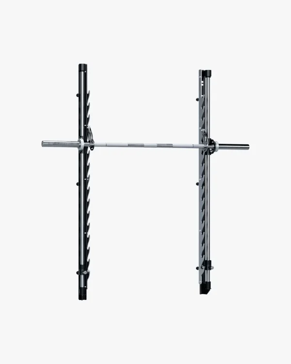 With the Smith attachment, you can adapt any Eleiko Prestera rig or rack with Smith Machine functionality. Easy to mount, set the kit to the desired height on the uprights to support a variety of exercises for upper and lower body strength training. The Smith Kit consists of vertical shafts, integrated safety stops, a housing that holds high-quality bearings, and the Smith bar. Please note that the attachment is designed exclusively for Eleiko Prestera and is incompatible with other rack and rig systems.
