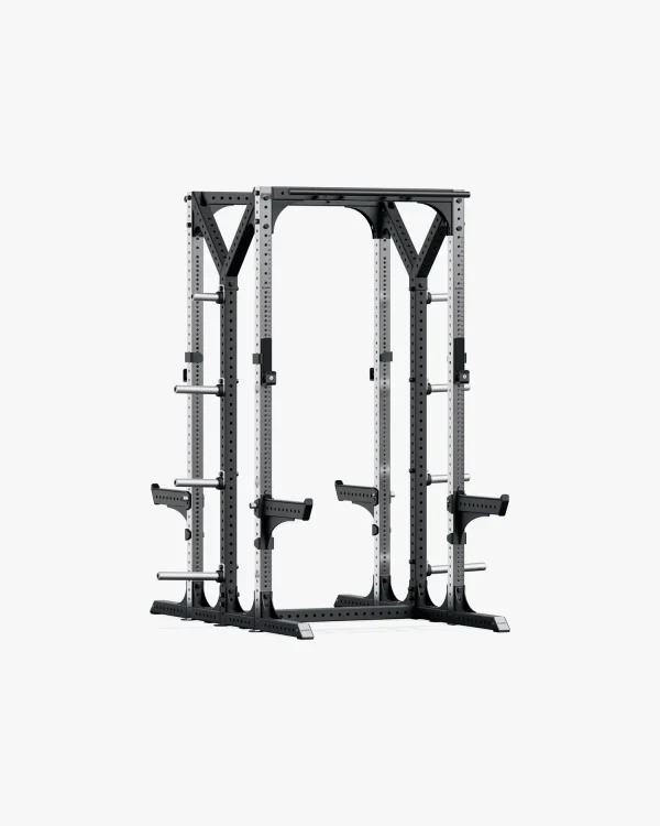 The Prestera Double Half Rack is the foundation for creating highly versatile dual strength training stations that maximize facility footprints. The stainless uprights deliver a performance upgrade providing tighter 25 mm hole spacing with etched numbering and a long-lasting finish optimized for gliding attachments. The rack geometry — made from robust 70×70 mm steel — strikes the optimal balance giving users more room to comfortably grasp and safely lift and rack the barbell while also supporting record setting lifts.