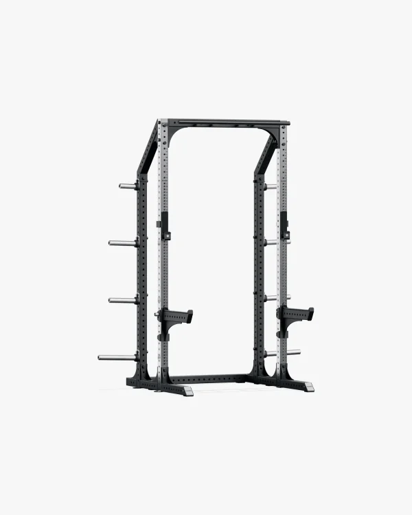 The Prestera Half Rack with stainless uprights is a foundation for building a versatile, compact strength training space. The stainless uprights deliver a performance upgrade providing tighter 25 mm hole spacing with etched numbering and a long-lasting finish optimized for gliding attachments. The rack geometry — made from robust 70×70 mm (3mm) steel — strikes the optimal balance giving users more room to comfortably grasp and safely lift and rack the barbell while also supporting record setting lifts.