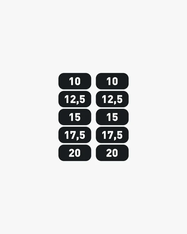 Order these Eleiko Weight Number Decals in the ranges and weight markings to meet your needs. The decals help ensure dumbbells are racked in the right place, keeping training spaces tidy and organized. The decals are available in kg and lb ranges that match our Eleiko Evo and Plate Dumbbell weight increments. Eleiko Pro Dumbbell shelves feature a recessed spot designed to house and protect the laminated decals. They can be used on both versions of the Eleiko Dumbbell shelves and fit on the front face of the kettlebell shelf. These decals are an add-on and need to be purchased separately in quantities that are appropriate for your needs.