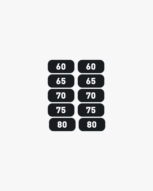 Order these Eleiko Weight Number Decals in the ranges and weight markings to meet your needs. The decals help ensure dumbbells are racked in the right place, keeping training spaces tidy and organized. The decals are available in kg and lb ranges that match our Eleiko Evo and Plate Dumbbell weight increments. Eleiko Pro Dumbbell shelves feature a recessed spot designed to house and protect the laminated decals. They can be used on both versions of the Eleiko Dumbbell shelves and fit on the front face of the kettlebell shelf. These decals are an add-on and need to be purchased separately in quantities that are appropriate for your needs.
